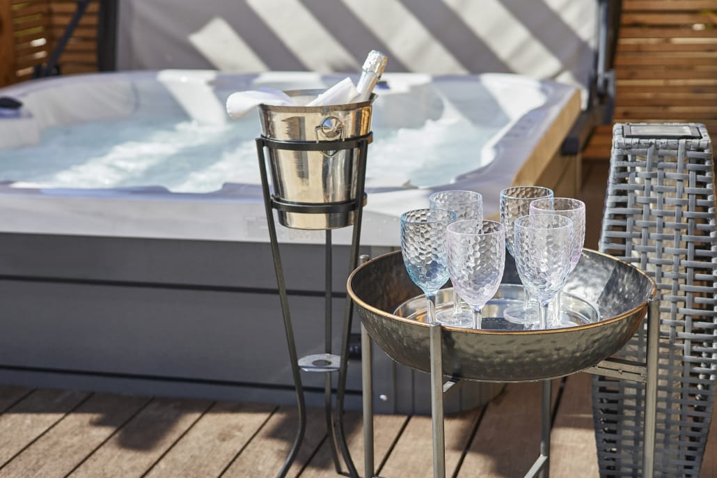 Indulge in the ultimate relaxation experience with our luxurious facilities, including three plush bedrooms, three sleek bathrooms, an expansive open-plan kitchen and dining space, and a spacious living room perfect for cozying up by the fire. And when the sun goes down, soak up the stars from the comfort of your own private garden, complete with a hot tub – the perfect spot to unwind and recharge!